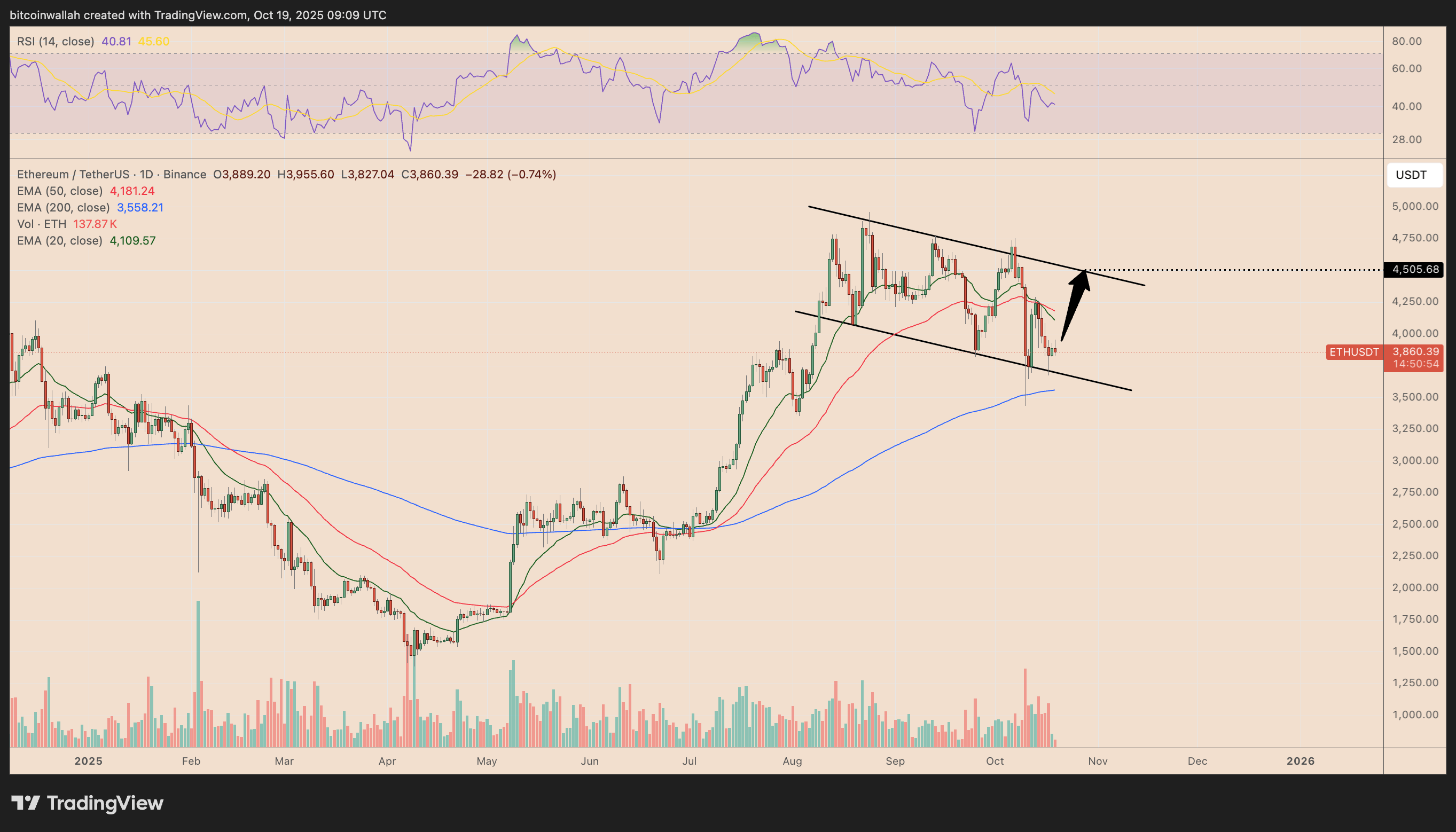 如果回暖势头持续,ETH可能在10月瞄准突破通道上边界,约在4450-4500美元区域。