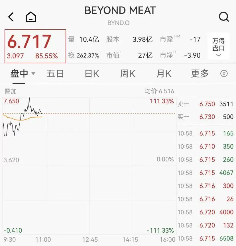 其他个股方面,“人造肉第一股”Beyond Meat开盘再度狂飙,一度暴涨超112%,盘中多次触及熔断,使得该股本周累计涨幅超990%。消息面上,Beyond Meat宣布与沃尔玛达成协议,将在全美更多门店扩大分销范围。