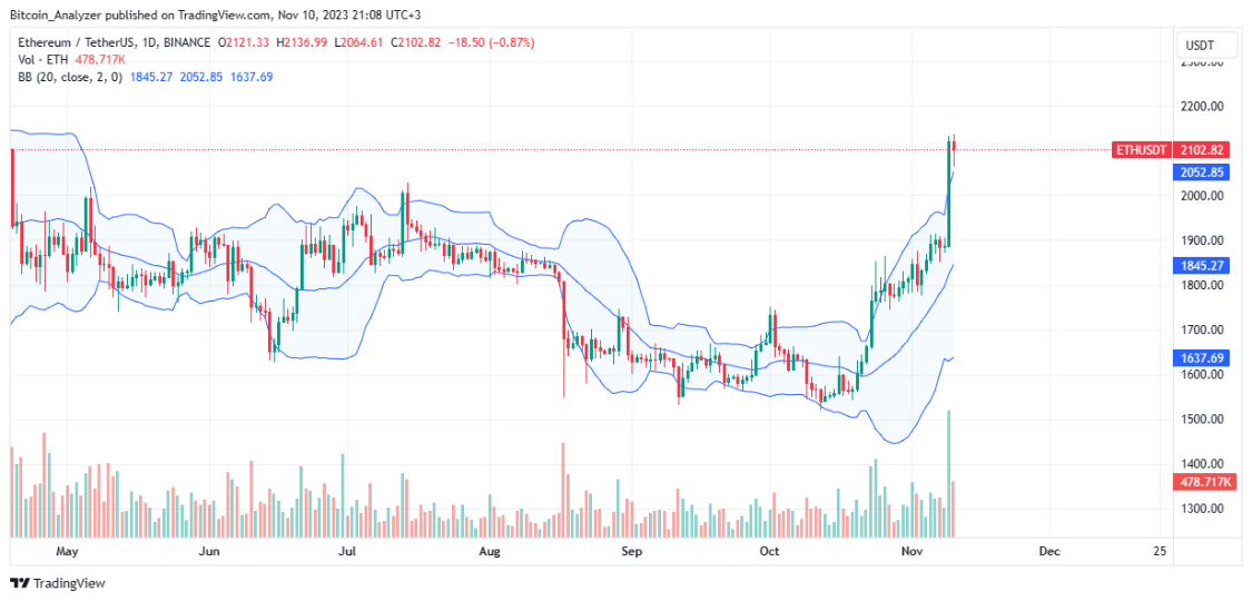 目前,以太坊(ETH)价格仍然相对低迷,但交易价格在11月9日的高点附近,并在良好的交易量支持下保持着看涨的格局。价格仍然保持在2,000美元心理支撑位以上,这是一个关键的反应水平。