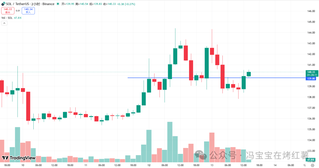 SOL关键位139.8,站稳后1-2小时级别或展开反弹,上方压力关注142、144、146附近。若无法站稳139.8,则需留意回落风险,下方支撑关注137、134、132附近。