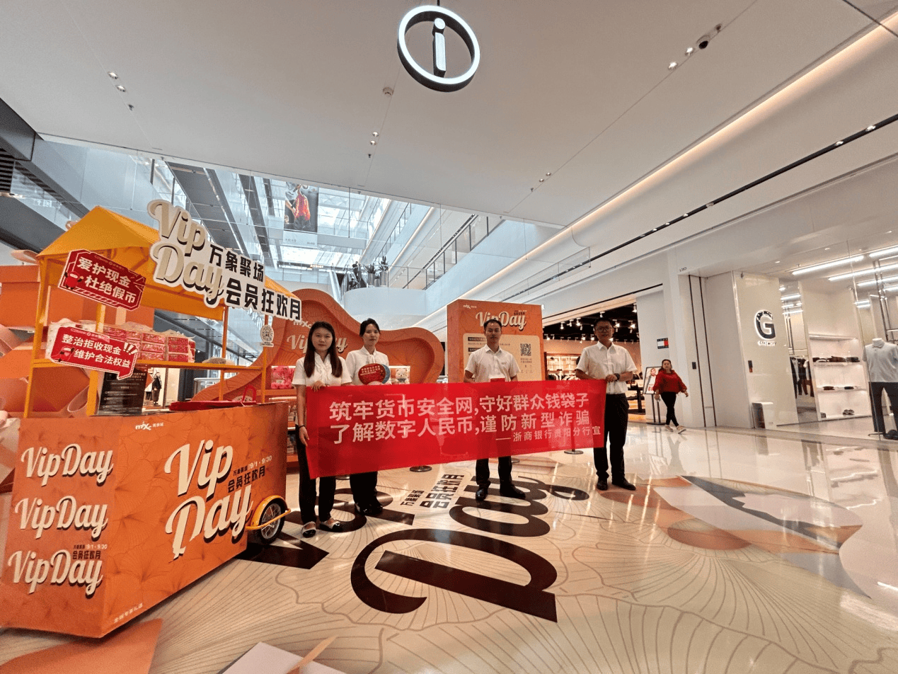 此次反假宣传进商圈,浙商银行贵阳分行将专业的反假货币与数字人民币知识带出银行网点,融入市民生活场景,让反假意识在商圈中落地生根,为构建全民参与的反假安全防线注入了坚实力量。