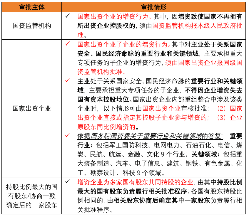 根据32号令第34、35条,以及39号文第2条的相关规定,结合国务院国资委网站互动热点回复以及近期项目实操经验,我们对国有企业增资涉及的审批问题进行概括总结如下: