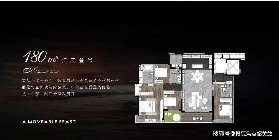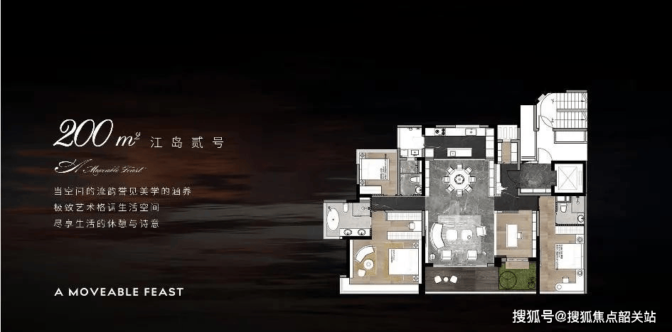 二百四十平方米的户型,则是整个系列的巅峰之作。它采用了三主套设计,两间套房与客厅并排,形成了三开间朝南的布局。这种布局方式,最大限度地保证了每个房间的采光和通风,让阳光和清风成为家中的常客。客厅、厨房跟餐厅都采用了当下最流行的开放式设计,整个公区显得非常开阔大气。客厅外接的L型长阳台做得十分精致,整个空间的采光跟观景效果非常出色。在这里,您可以举办盛大的宴会,也可以与家人围坐一起享受温馨的晚餐,每一种场景都能完美呈现。