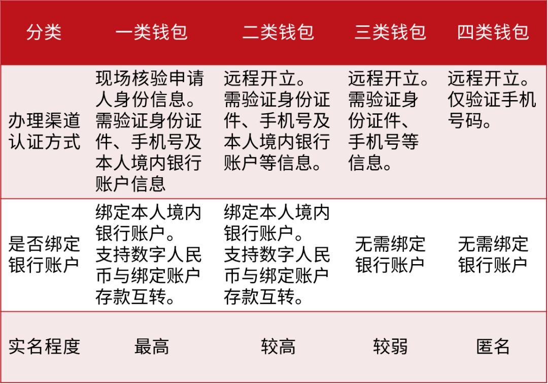 个人钱包:自然人和个体工商户可以开立个人钱包,按照相应客户身份识别强度采用分类交易和余额限额管理。