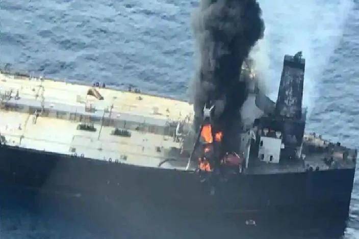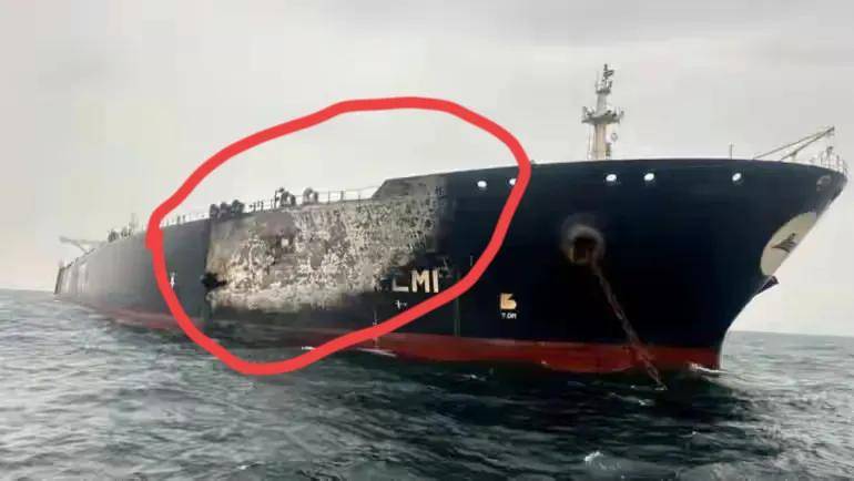 于是印度油轮一方在完成转账后,真以为手握“免死金牌”,便大摇大摆驶入霍尔木兹海峡核心管控区。结果也就可想而知了,因为伊朗革命卫队从未收到这笔费用,更未核发任何许可,在伊方看来,这艘印度油轮就是无视警告、擅自闯关的挑衅目标,随即开火拦截、强行驱离。从事后给出的印度游轮照片来看,其船体一侧明显有遭到炮击的痕迹,还有大片着火烧蚀的情况。
